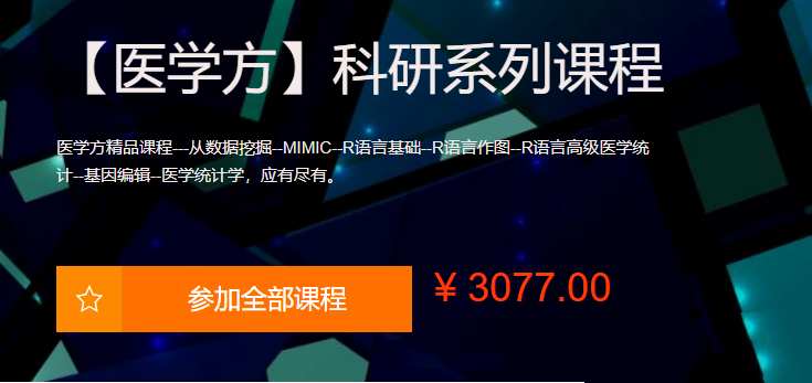 医学方精品课程—从数据挖掘–MIMIC–R语言基础–R语言作图–R语言高级医学统计–基因编辑–医学统计学,应有尽有。