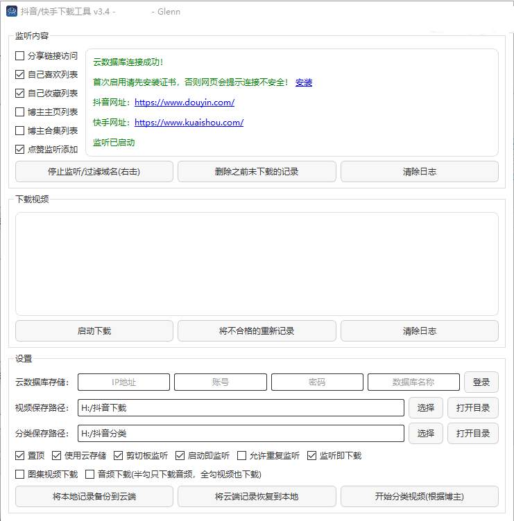 剪切板监听:勾选后,复制抖音或快手的分享链接可以直接解析添加。